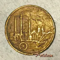 Première pièce de 50 pfennigs de la RDA en 1950, cette monnaie incarne la phase de reconstruction d’après-​guerre, mêlant symboles industriels et agricoles pour marquer l’identité de l’État est-​allemand.
