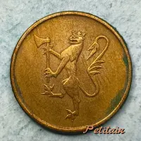 Cette pièce fait partie de la seconde série de petites dénominations émises sous le roi Olav V, caractérisée par une réduction de taille et le remplacement du portrait du roi par des armoiries et des monogrammes.